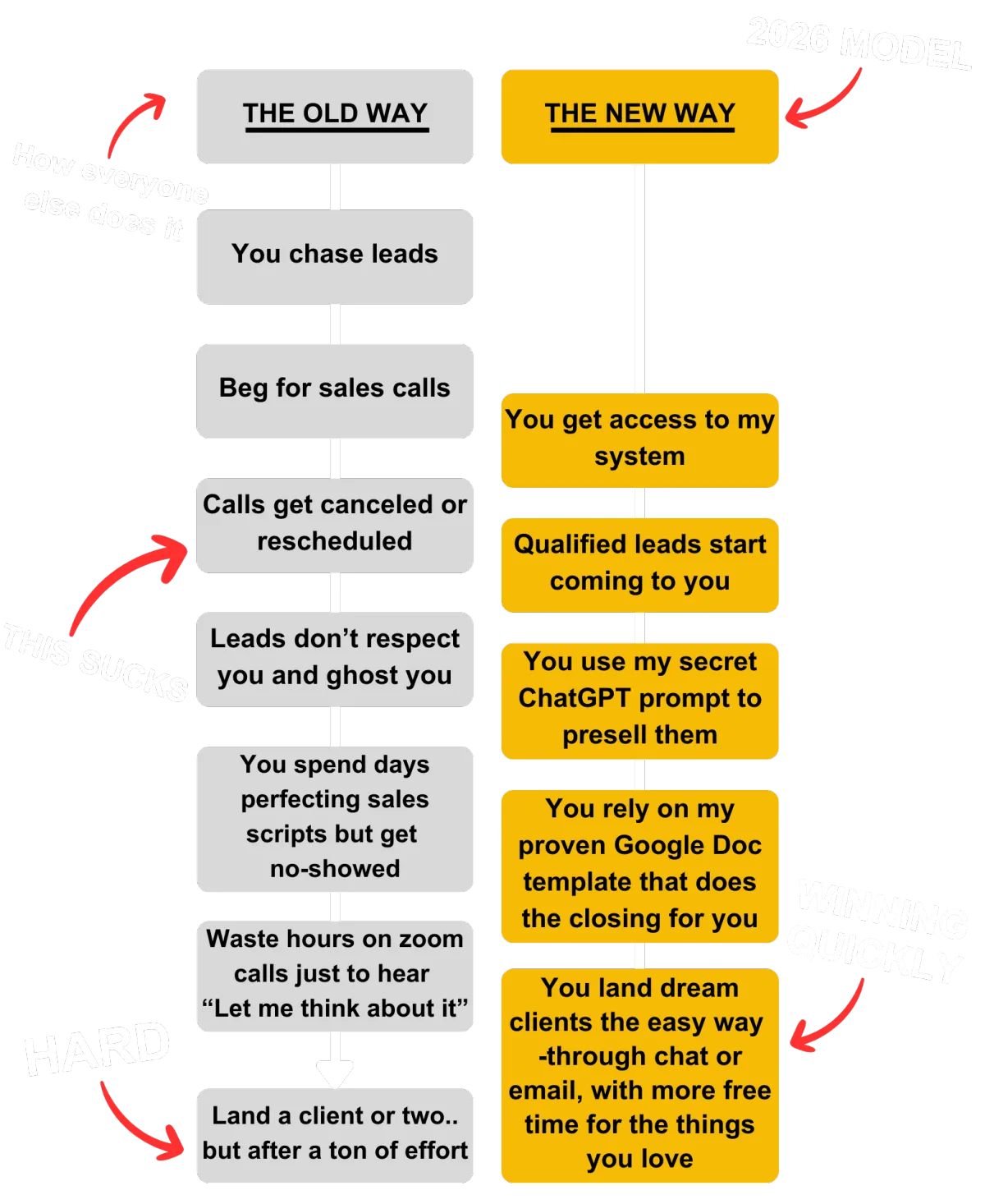 The magic is in the process—the right lead attraction strategy, pre-selling method, and perfect Google Doc template that seals the deal effortlessly.